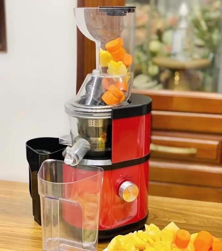 - Máy ép chậm Klarstein Fruitberry công suất 400W, tốc độ quay 60 vòng/phút. Ép 3kg hoa quả chỉ 5ph là xong.
